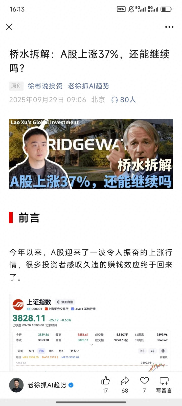 这就是A股的荒诞之美。桥水盯着“泡沫六指标”忙得团团转,可真懂中国市场的人心里都明白:行情能不能持续,关键看故事能不能续。只要叙事在,就能涨;叙事一崩塌,再漂亮的利润都没人搭理。股市在这里,从来不是财报的延伸,而是集体情绪的放大器。